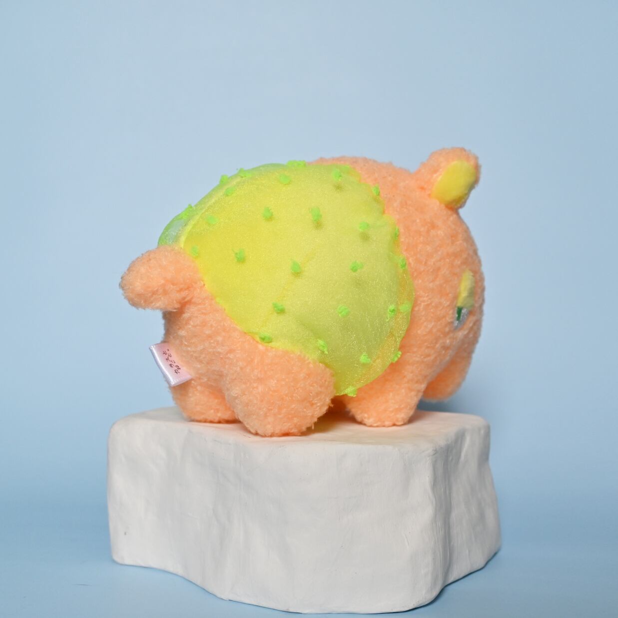 黄色いパンツの上に、黄緑ドットのオーガンジーのぶかぶかパンツを履いた、ペールオレンジ色の獏さんです。