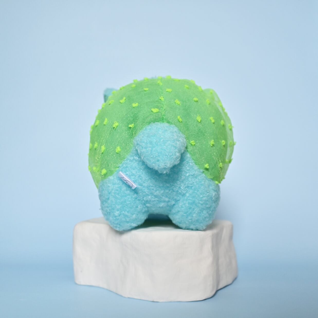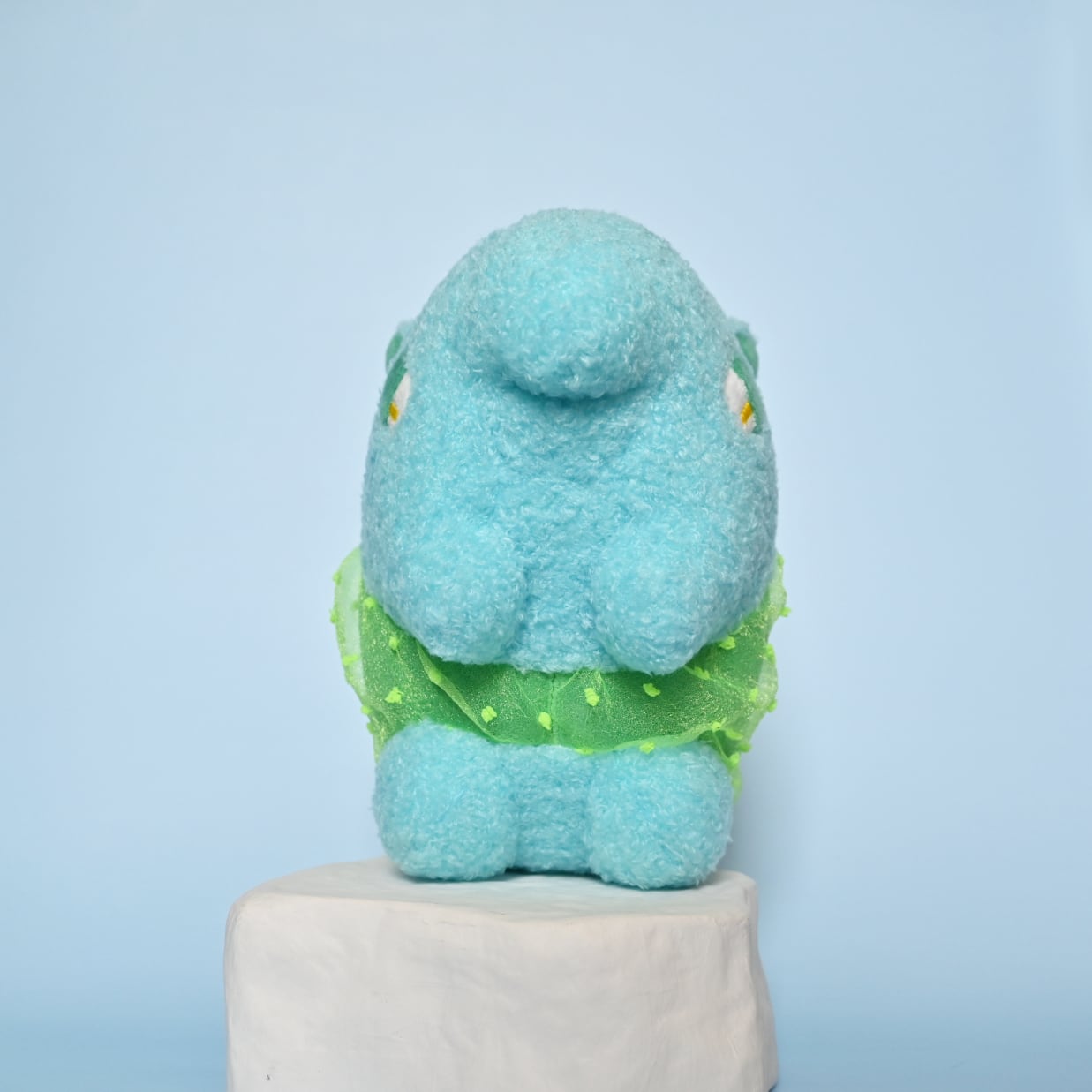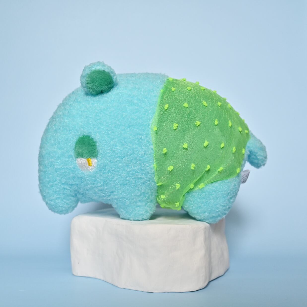 青緑色パンツの上に、黄緑色の水玉オーガンジーのパンツを履いた、水色獏さんです。