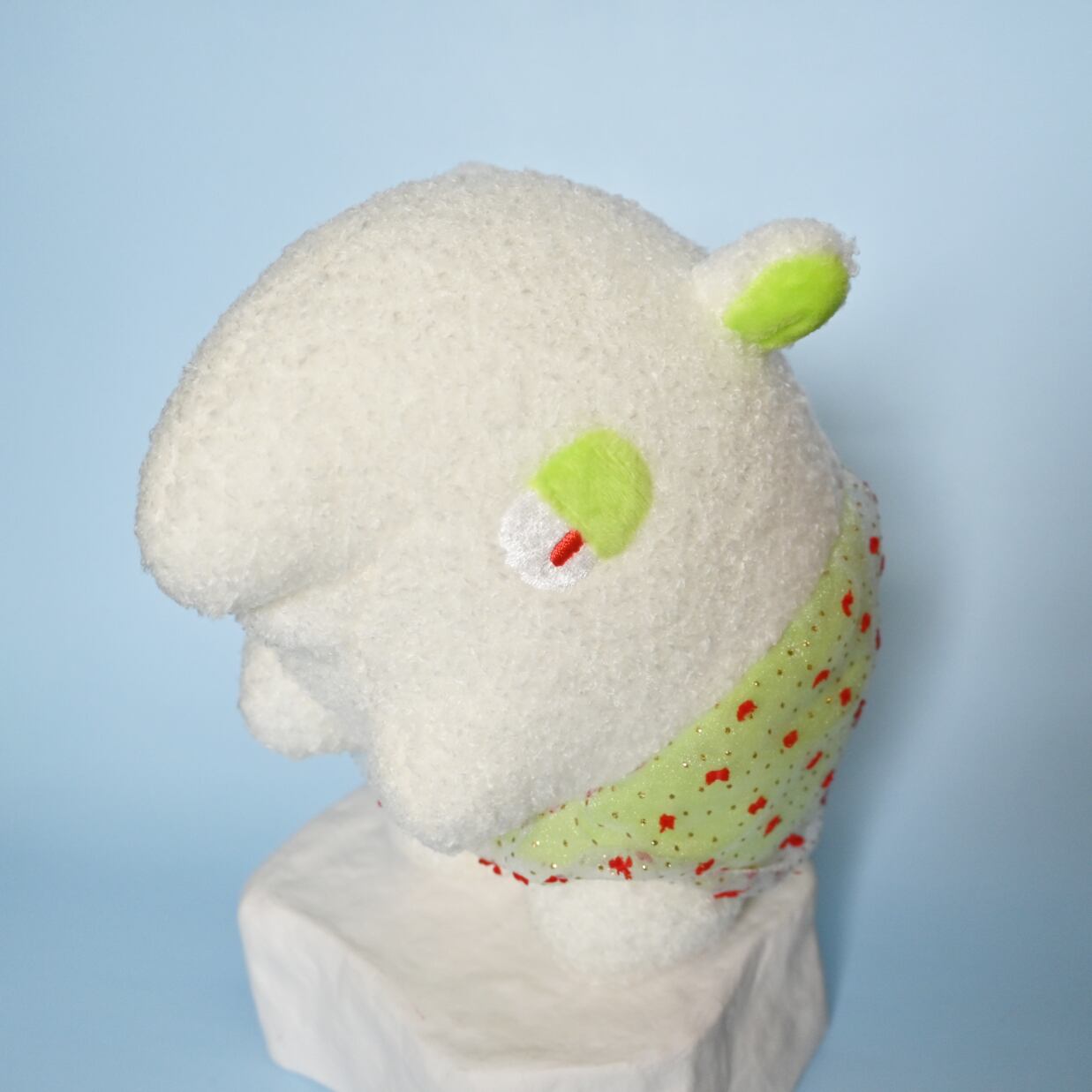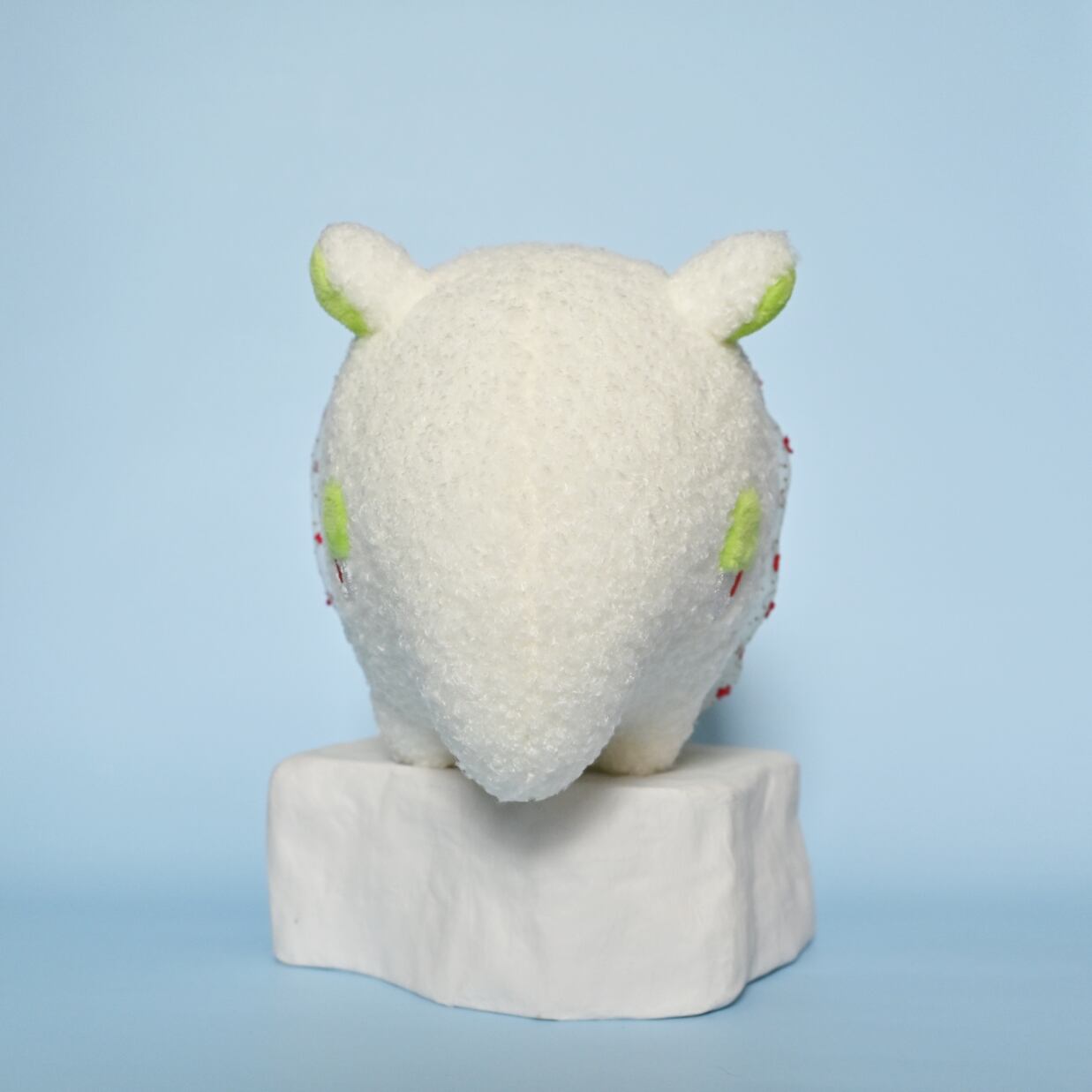 黄緑色パンツの上に、赤い水玉オーガンジーのパンツを履いた、白い獏さんです。